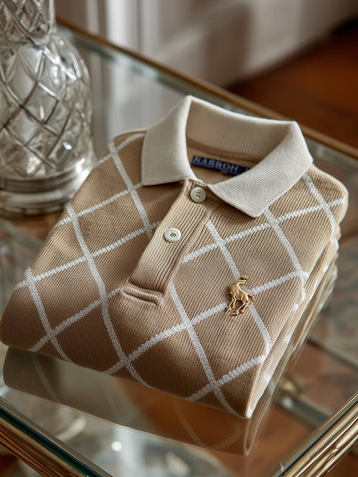 TeeCrate Men’s Check Business Casual Short Sleeve Ribbed Knitting Polo Shirt