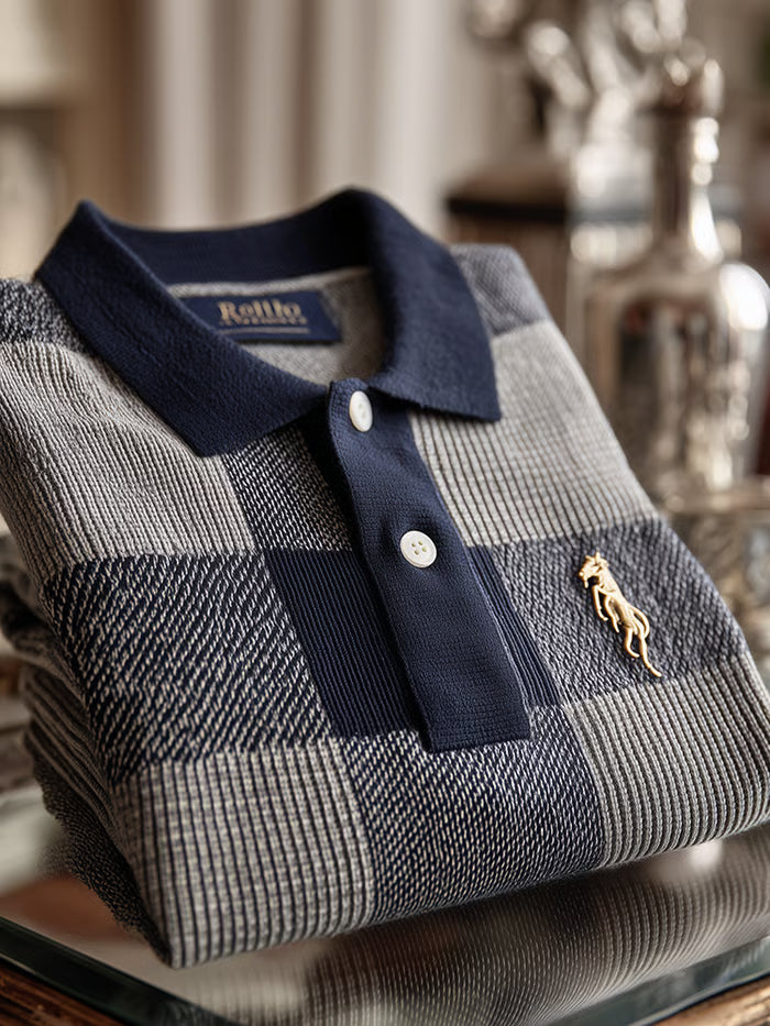 TeeCrate Men’s Check Business Casual Short Sleeve Ribbed Knitting Polo Shirt
