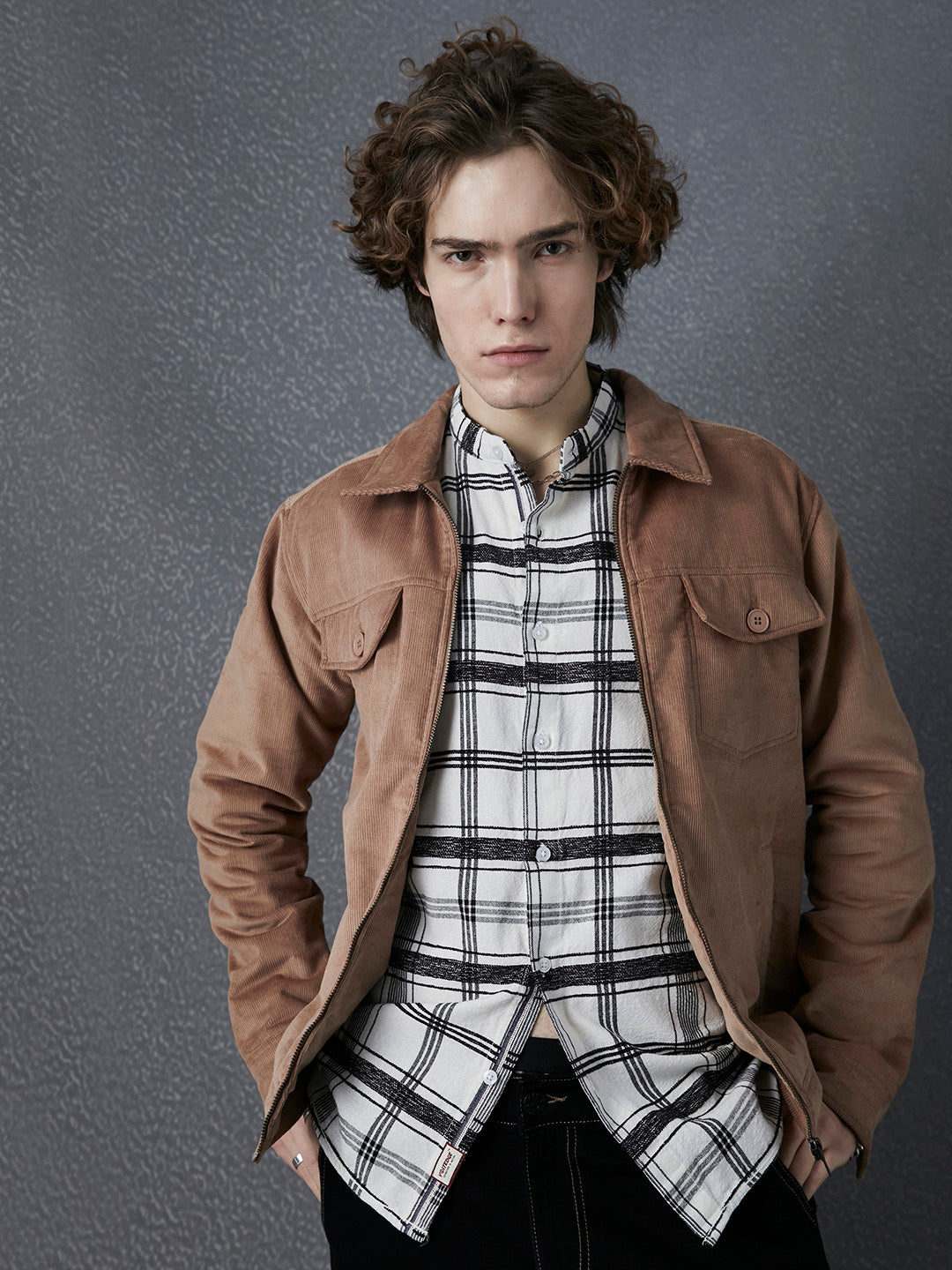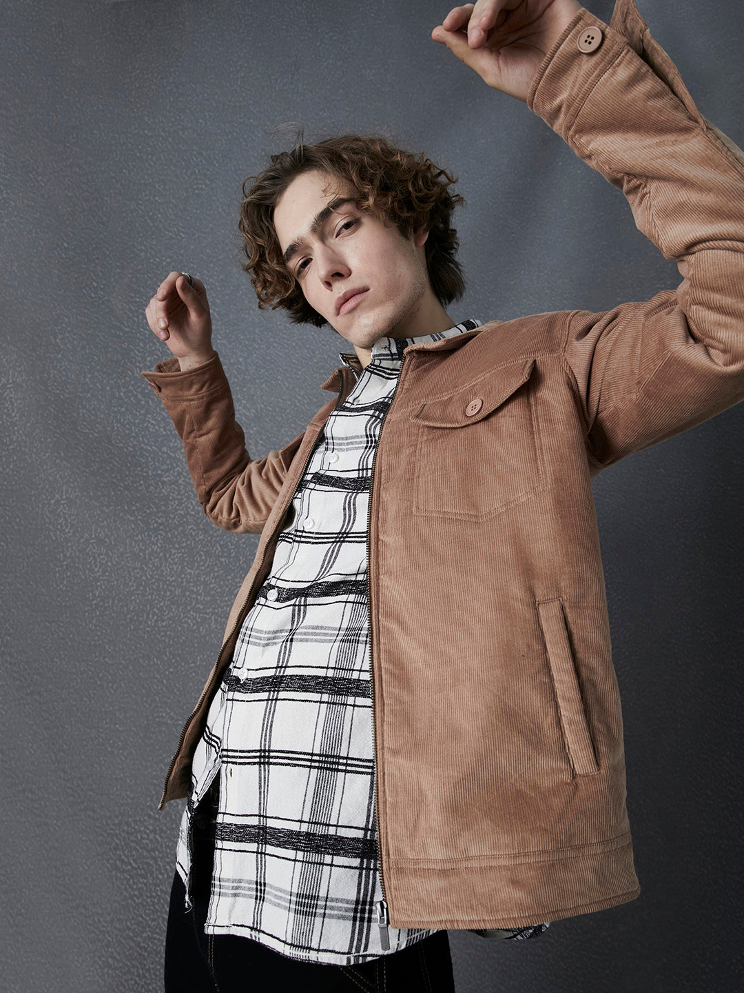 Men Premium Courduroy Double Flap Pocket Full Zip Full Sleeve Tan Jacket