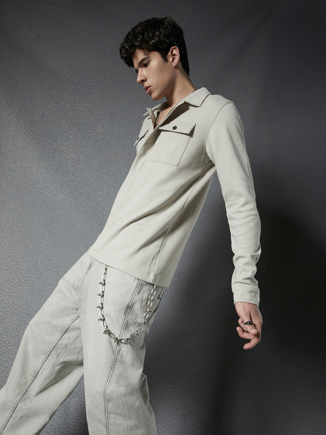 Men Regular Fit Double Pocket Premium Solid Grey Full Sleeve Jacket